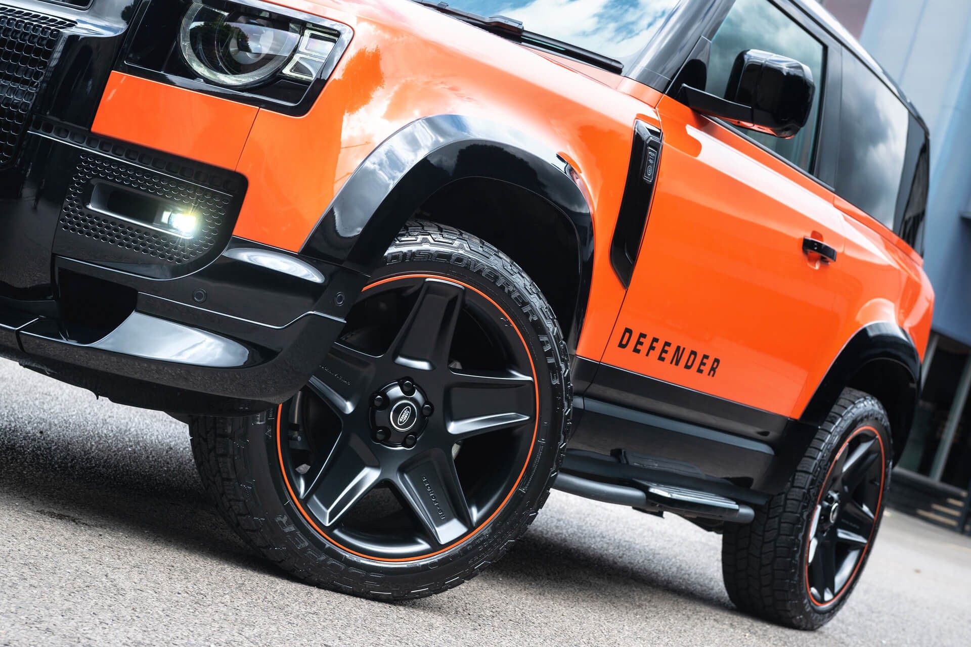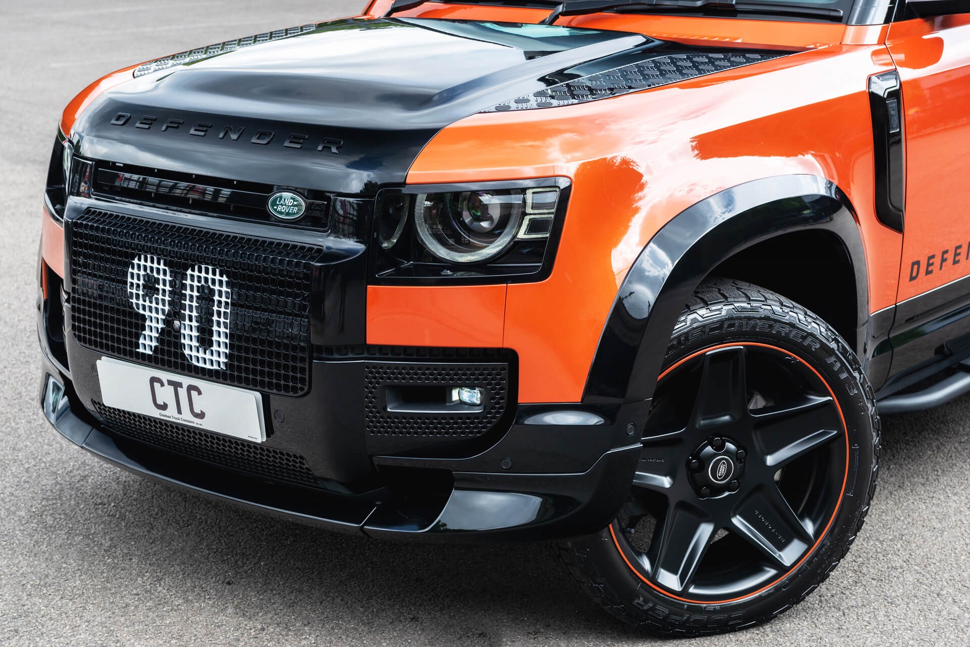 Heritage Remastered Adventure Edition. Presenting the Heritage Remastered Defender 90, a masterpiece of design and engineering, reimagined for those who demand the very best. This extraordinary Defender 90 boasts a signature front lattice grille, a 3-piece front bumper valance, and colour-matched details, all highlighted by a hard spare wheel cover adorned with the distinctive "90" graphic. Drawing inspiration from the original Defenders that competed in the prestigious G4 Challenge of 2003 and 2006, alongside styling elements from the iconic Land Rover Series vehicles, this build represents the pinnacle of rugged sophistication. Finished in striking Phoenix Orange, with gloss black accents, it celebrates the Defender Ultimate Edition in style. Step inside and experience the ultimate in luxury. The cabin is swathed in sumptuous black leather, with Phoenix Orange stitching that perfectly complements the exterior, enveloping you in a sense of opulence and adventure. This is not just a vehicle; it's the ultimate Defender for the modern connoisseur...KAHN® is the original British automotive fashion house.
