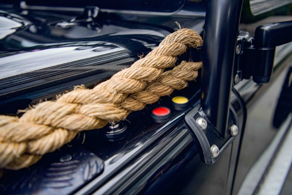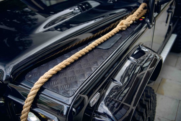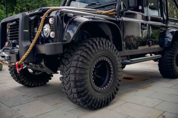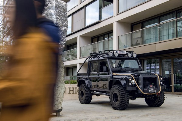 Sam Mendes, the director of both Skyfall and Spectre wanted a spectacular snow chase scene and turned to Jaguar Land Rover to assist. With the standard Land Rover 110 Defender deemed a bit too bland for the baddy’s getaway car they turned to leading Land Rover modifiers, Bowler. The firm transformed 10 standard production, Santorini Black, crew-cab 110s into the SVX Concept or Spectre Defender. The cars featured huge 37-inch tyres, heavy-duty roll cages plus toughened suspensions with rose joints and Bilstein rally dampers. A hydraulic handbrake was installed, and its lever repositioned. The engine was tuned to give 180bhp and Recaro seats fitted.